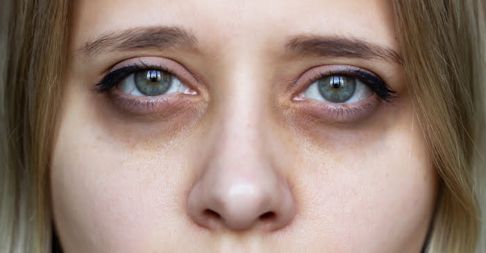 Podkrążone oczy i zmęczony wygląd – ciemne worki pod oczami i ziemisty odcień skóry to efekty utraty elektrolitów i odwodnienia.