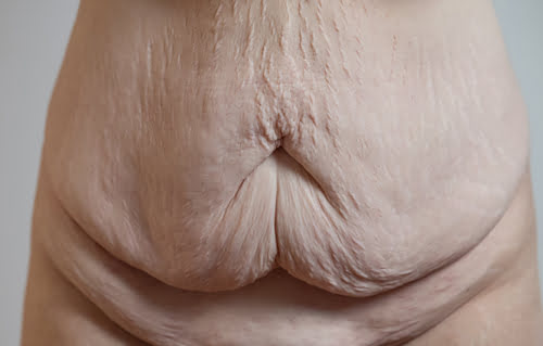 Wiotkość i obwisłość skóry – szybki spadek wagi nie pozwala skórze na dopasowanie się do nowych kształtów ciała, co prowadzi do wiotczenia skóry na brzuchu, ramionach, udach i twarzy.
